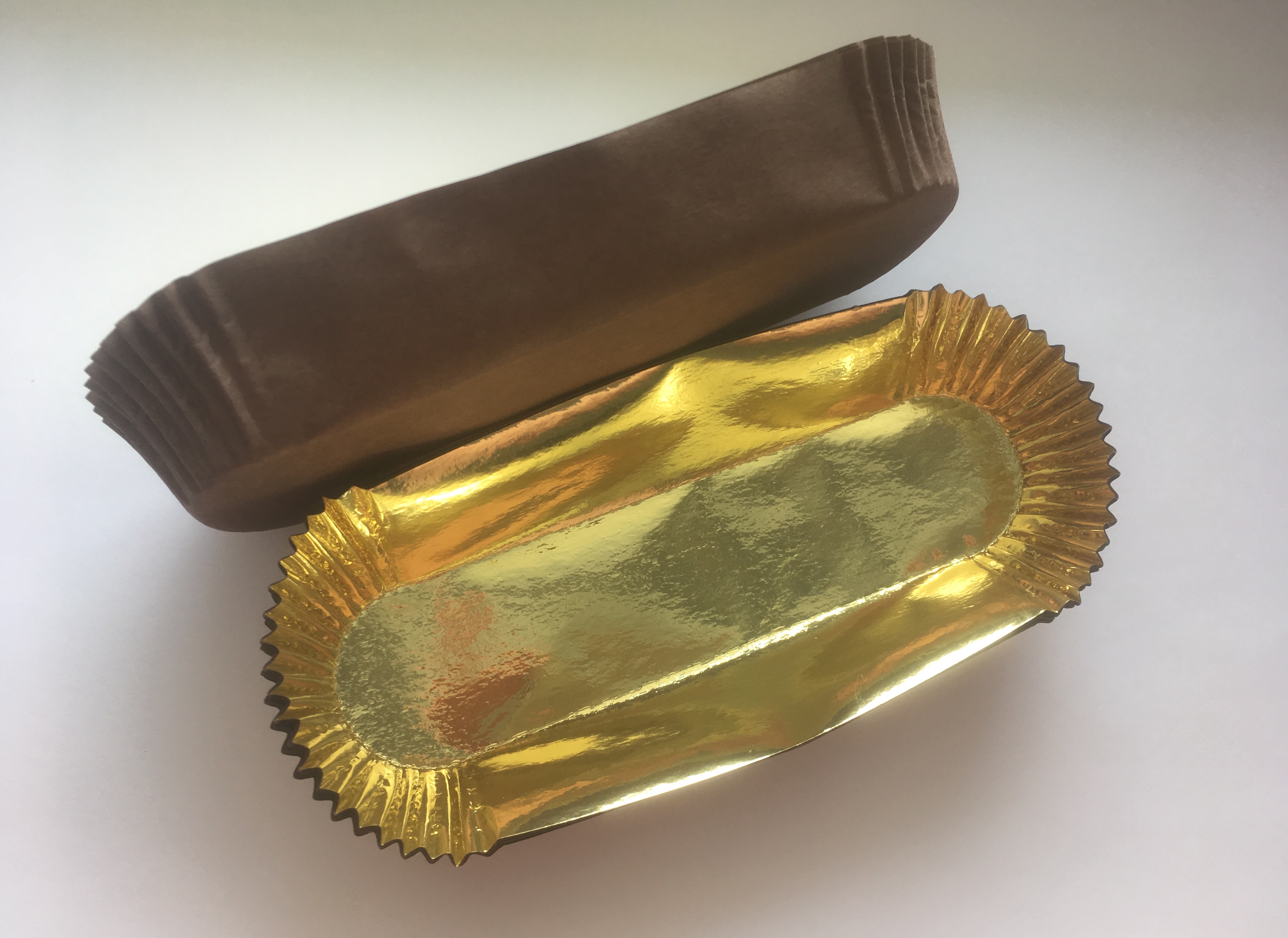 Капсулы бумажные (овал, коричневые/золото, 50 шт в упак) 136х35 h25мм